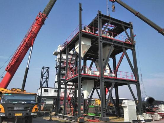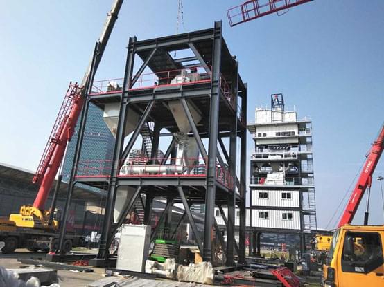 今天是上海寶馬展南方路機展品進場安裝的第五天。天氣晴朗,陽光明媚,安裝團隊干勁十足,安裝工作進展比預(yù)期中快,瀝青攪拌設(shè)備原生部分主樓安裝完成,緊接著進入熱再生部分吊裝,干混砂漿攪拌設(shè)備也安裝至攪拌層。
